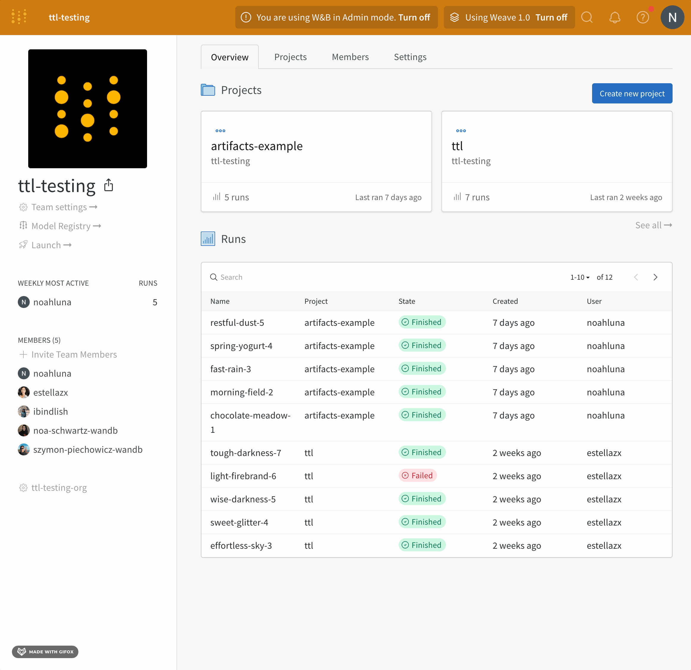 View TTL policies for artifacts with the Python SDK or with the W&B App UI.