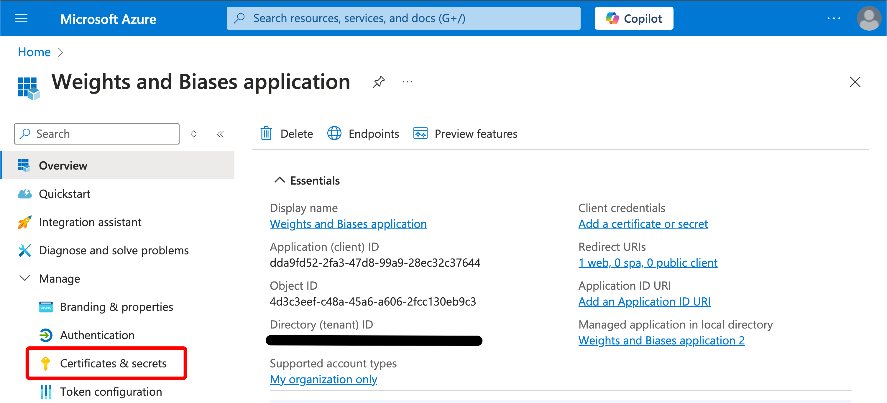 • Make a note of the “Application (client) ID” and “Directory (tenant) ID.”
